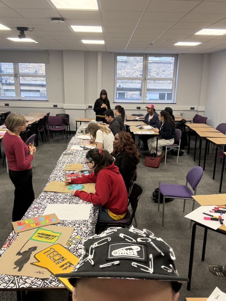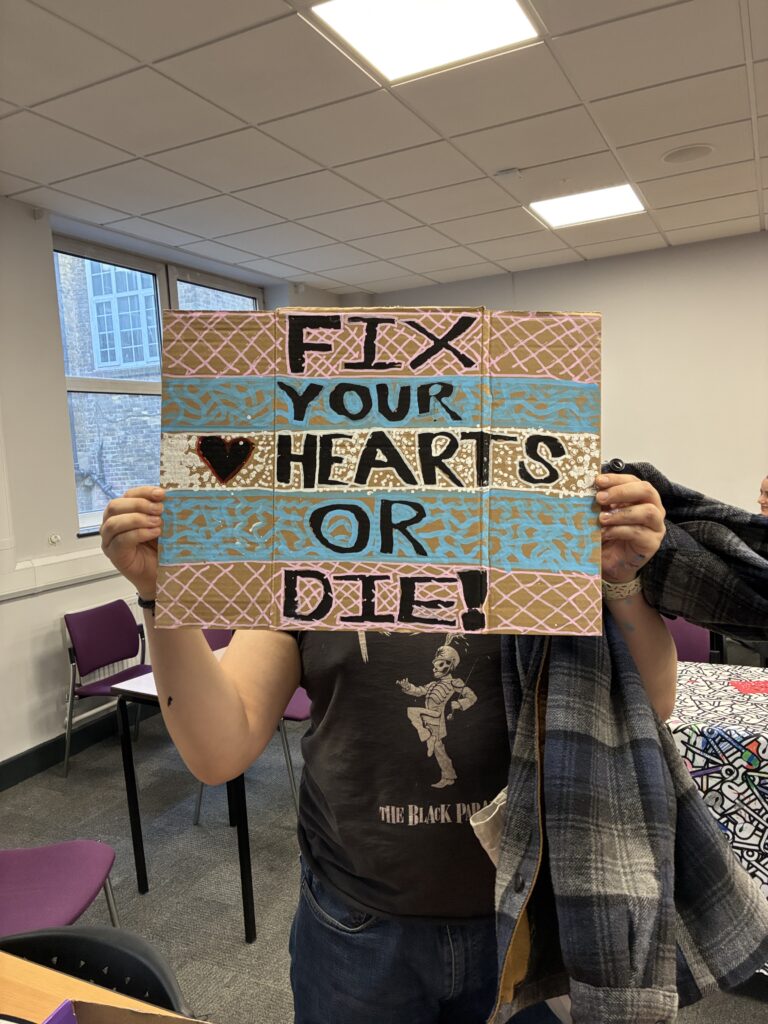 I was invited to lecture and run a placard making workshop for students at London Metropolitan University, in response to the current political climate, using my previous experience of activating community projects & campaigns through art based mediums as a way to inspire the students. Now, I don’t do politics (If 1+1=5 to you, good luck, do you *that Keanu Reeves meme here*) but there’s a lot going on in the world & all you can do is start where you’re at – making awesome placards expressing how you feel helps!